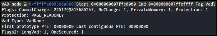 0xfffffa800577ba10의 VAD 노드에는 어떤 보호 기능이 있는가?