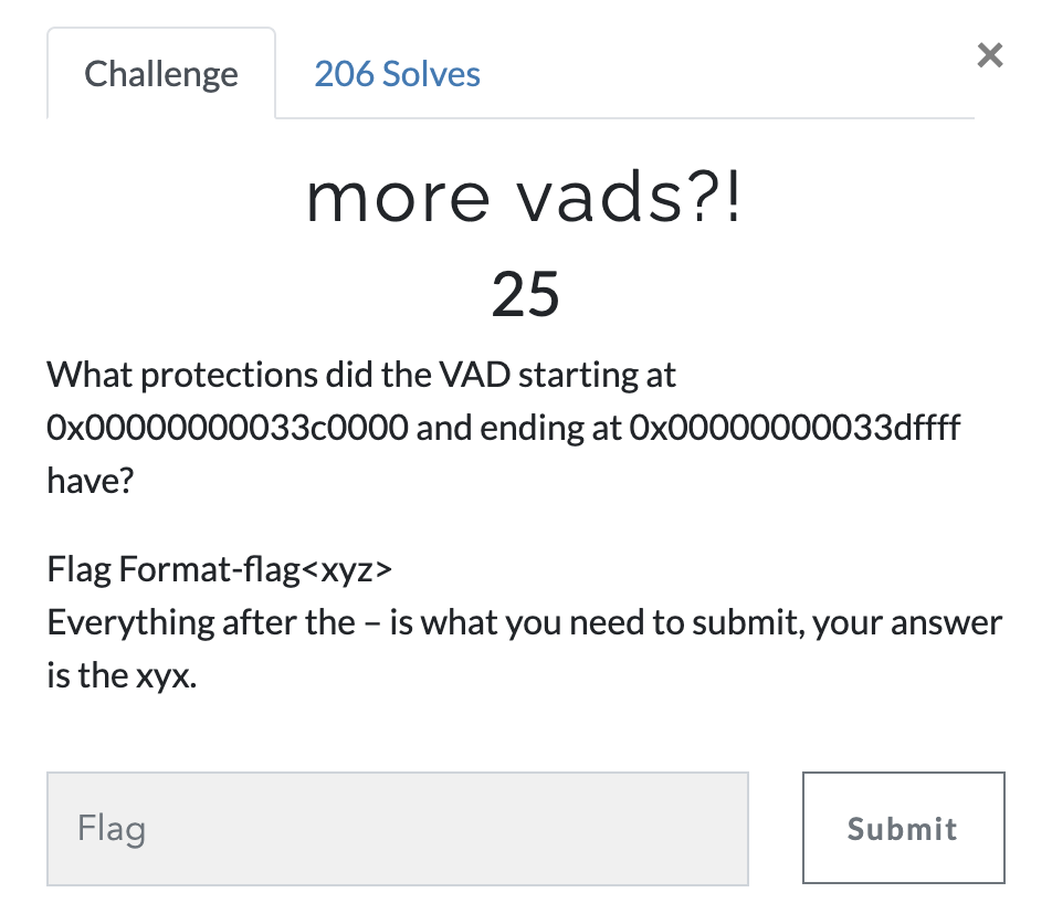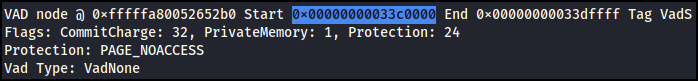 VAD는 0x00000000033c0000에서 시작하여 0x00000000033dff로 끝나는 보호 기능은 무엇인가?