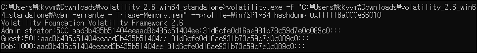 HackingPractice 2020. 12. 30. 17:43triage.mem의 sha1 hash 값은?