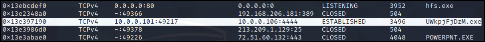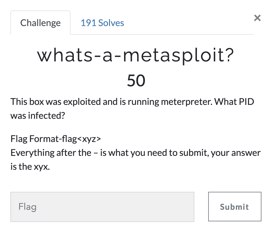 이 박스는 메타스플로잇 되었고 미터프리터를 실행 중입니다. 무슨 PID가 감염되었는가