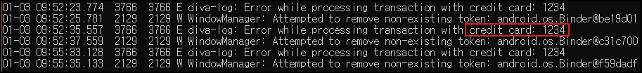 Log 기록에 Credit Card 중요정보가 평문으로 노출되는 것을 알 수 있다.
