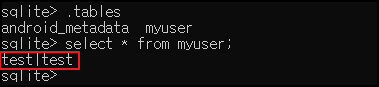 myuser 테이블에 test/test가 저장되어 있는 것을 알 수 있다.