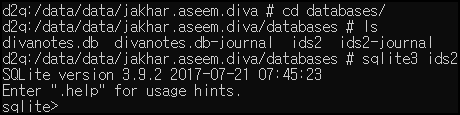 데이터베이스 디렉터리에서 sqlite3 명령어로 ids2 DataBase에 연결했다.