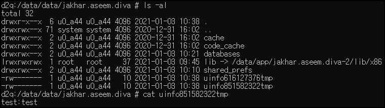 | DIVA - Insecure Data Storage - Part 1 (0) | 2021.01.03 |