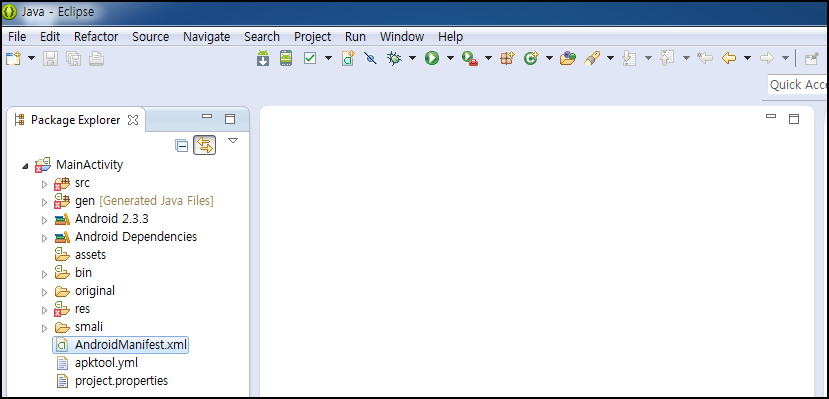이클립스 왼쪽 메뉴에 MainAcitiviy를 보여주는 것을 알 수 있다.