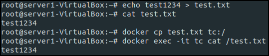 test.txt 파일에 test1234 값을 저장 후 docker cp 명령어를 이용해 docker 안으로 복사했다.