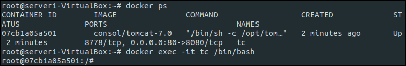 Hostname이 Docker 컨테이너로 변경되어 쉘로 접속된 것을 알 수 있다.