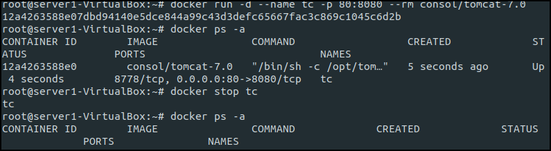 rm 옵션을 해도 삭제되지 않았는 데 docker 정지 시 rm 명령어가 동작해 삭제된것을 알 수 있다.