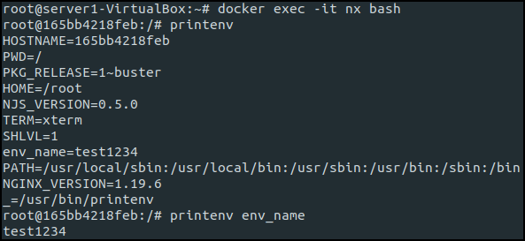 docker 쉘로 접속 후 printenv 명령어로 확인해 보니 test1234 환경변수를 확인할 수 있다.