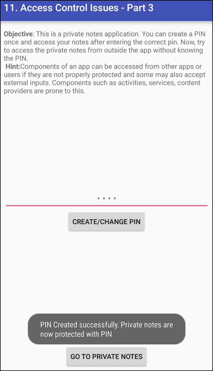 목표 : PIN번호를 설정 후 해당 번호를 통해 접근이 가능한 앱을 PIN번호를 모르는 상태로 앱을 실행하지 않고 접근하기