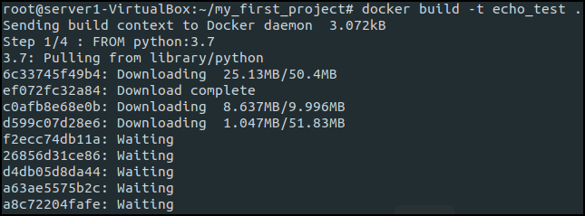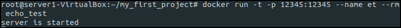 echo_test image를 -t 옵션을 주면 실행시키면 동작하는 것을 알 수 있다.
