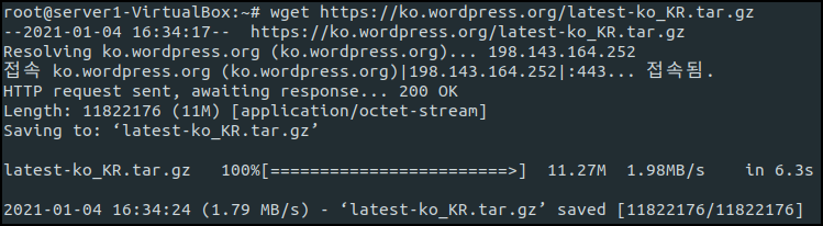 압축을 풀면 wordpress 디렉터리가 생성된 것을 알 수 있다.