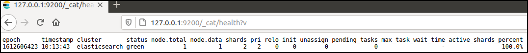 클러스터 상태를 확인하기 위해 _cat API를 사용- 녹색 모든 것이 좋음 클러스터가 완전히 작동함