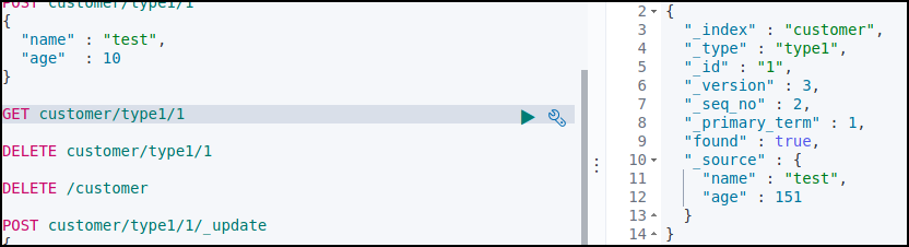 POST customer/type1/1 customer 색인 데이터를 넣었다.