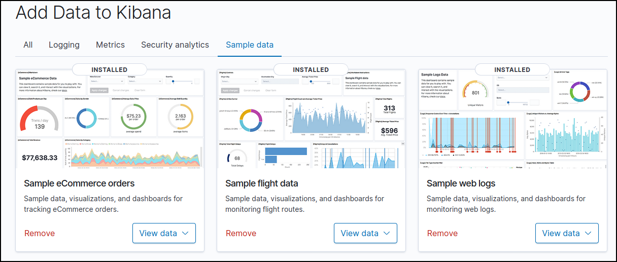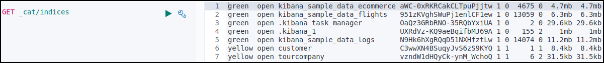 GET _cat/indices Query를 통해 sample_data를 확인했다.
