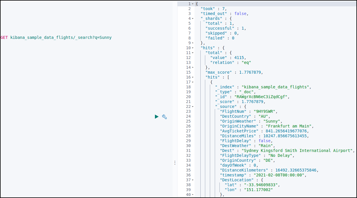 | books 인덱스에서 hamlet 검색 | localhost:9200/books/_ search?q =hamlet |