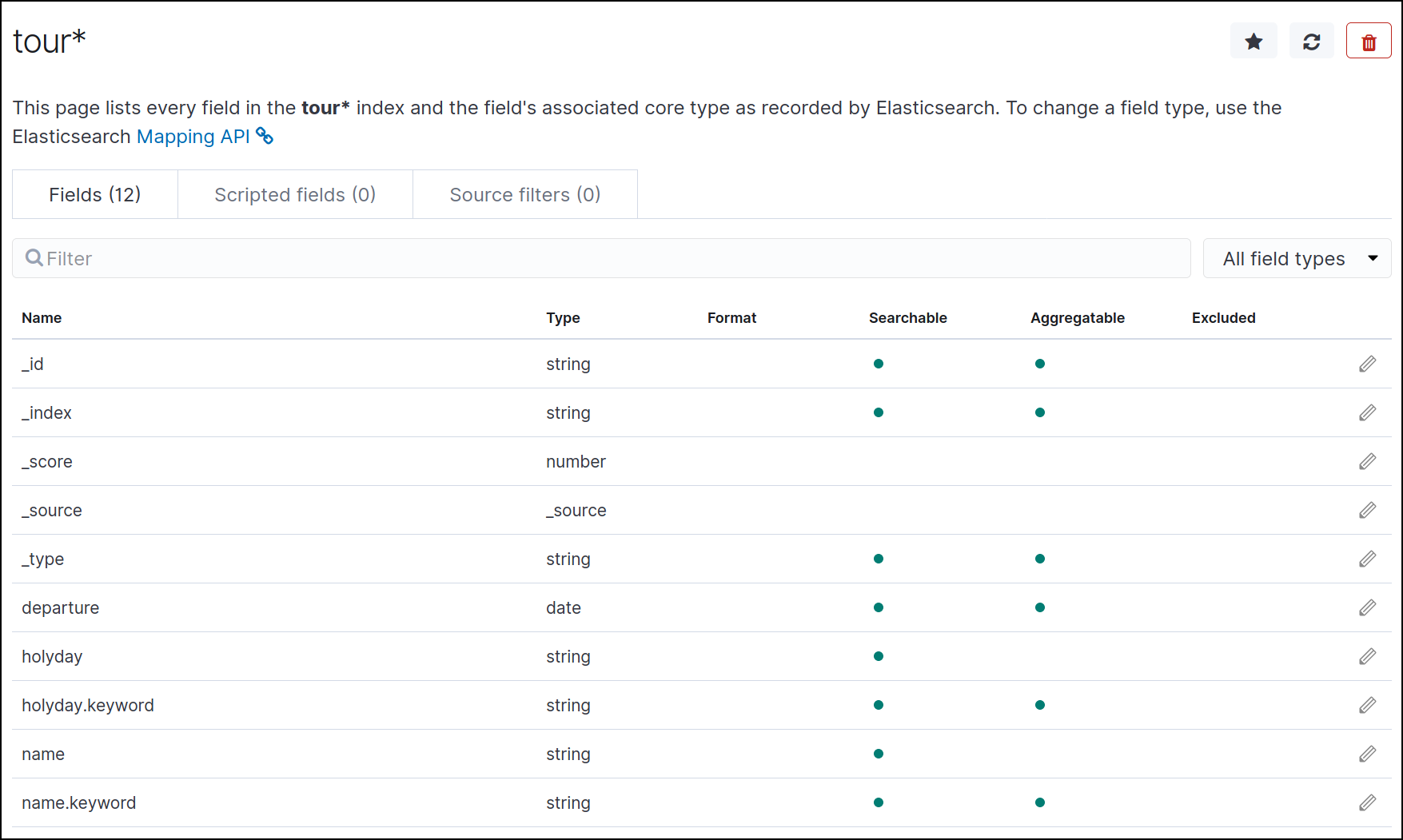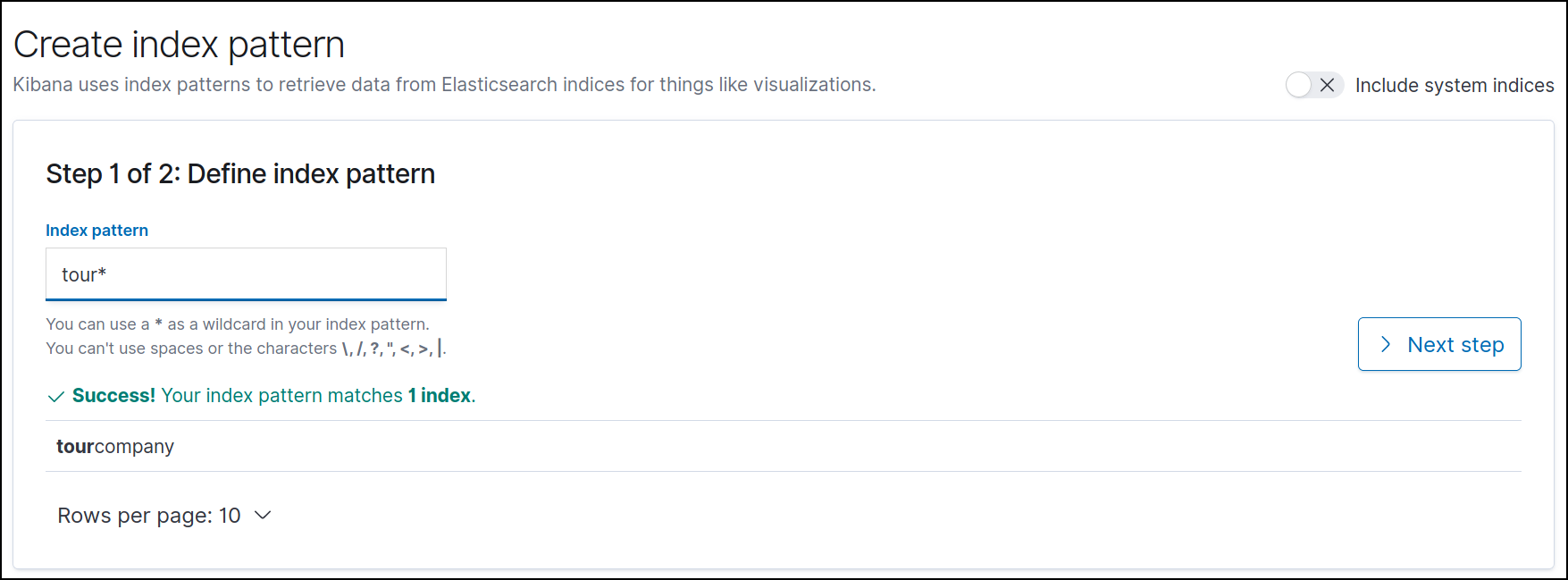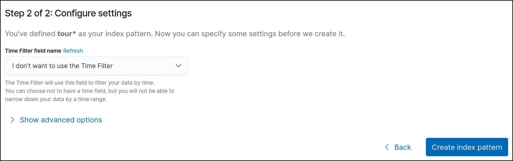 index pattern을 생성하기 위해 tour* Index를 생성했다.