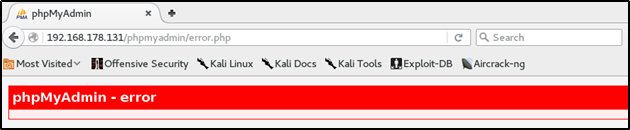 PhpMyAdmin페이지의 error 페이지로 들어갔다.