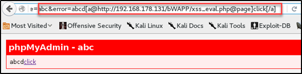Click을 누르면 xss_eval.php를 불러오는 스크립트 언어다.
