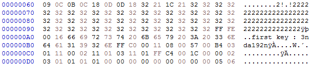 whitehack1.jpg 사진 파일 hexdump를 확인하면 first key : 3nda192n를 확인할 수 있다.