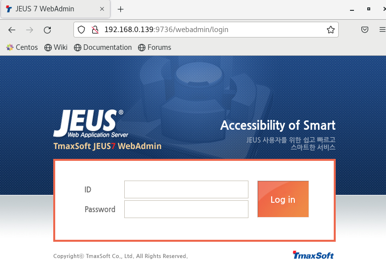 localhost 포트 번호 9736 입력하면 JEUS 페이지 확인