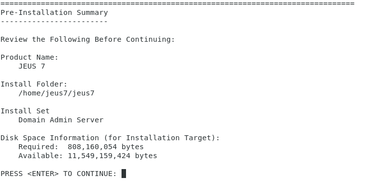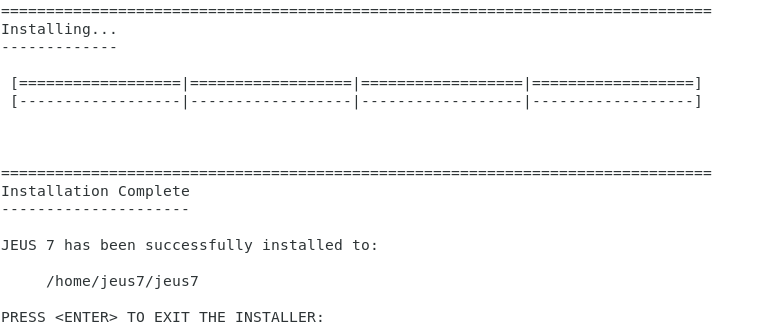 아래와 같은 메시지가 보이면 JEUS 7 설치 완료