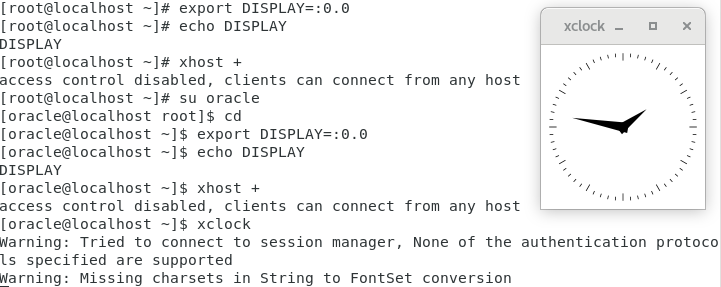 root 계정과 oracle 계정에서 xclock이 아래와 같이 실행되면 oracle GUI 설치가 가능하다.