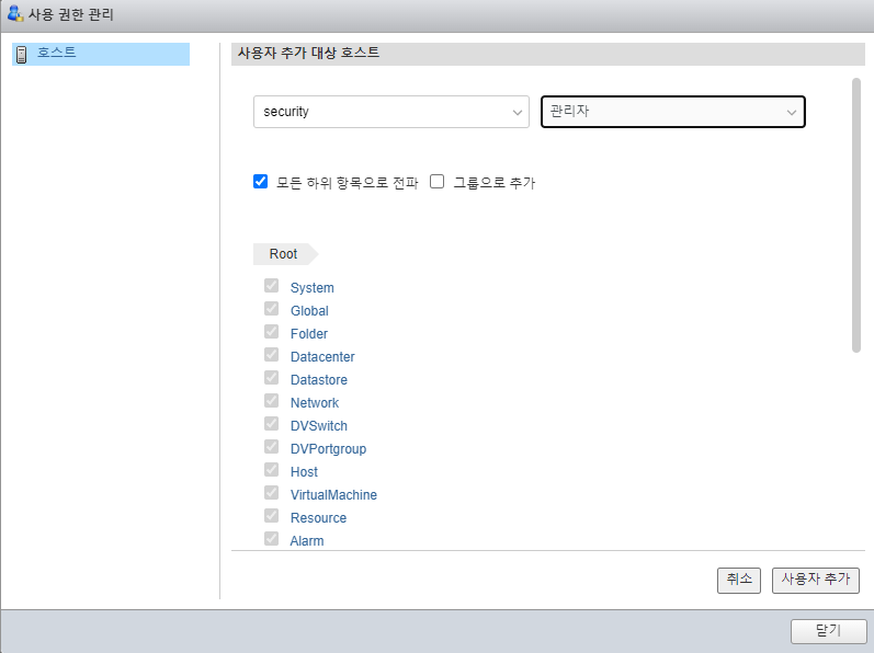 securiyt 계정에 관리자 권한이 추가된 것을 확인