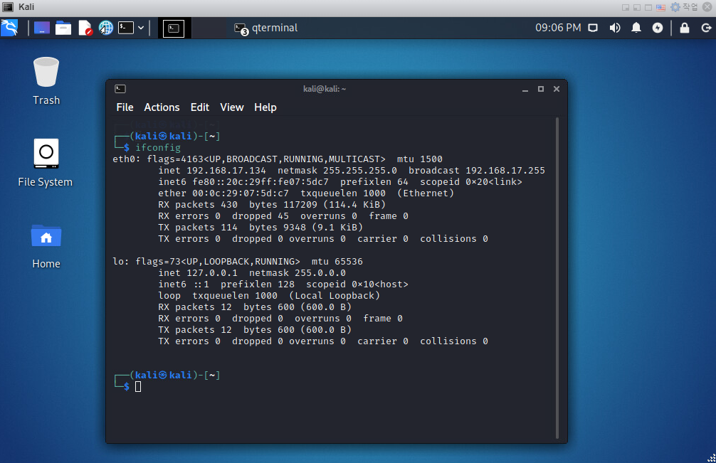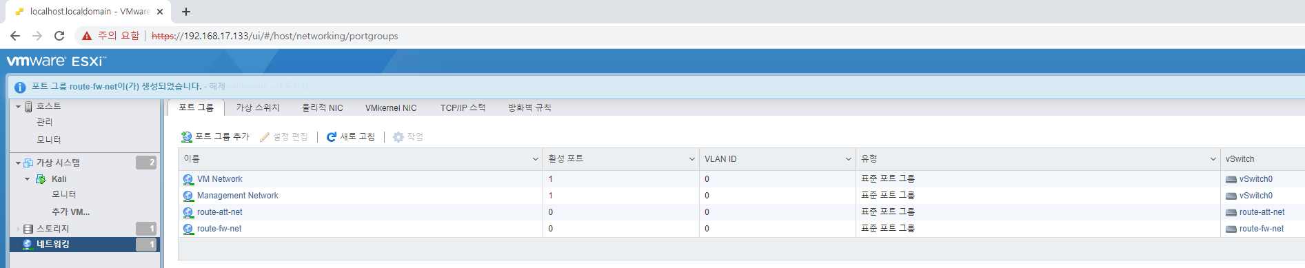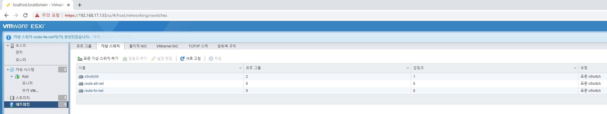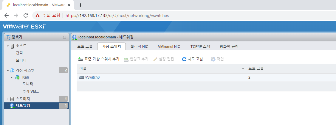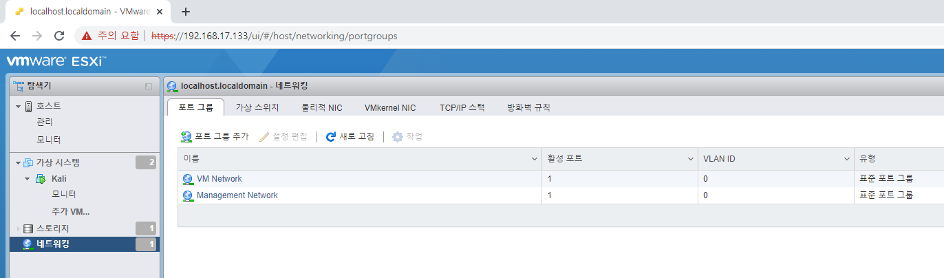 칼리 리눅스 IP대역에 Vmware ESXi 네트워크 대역과 같다