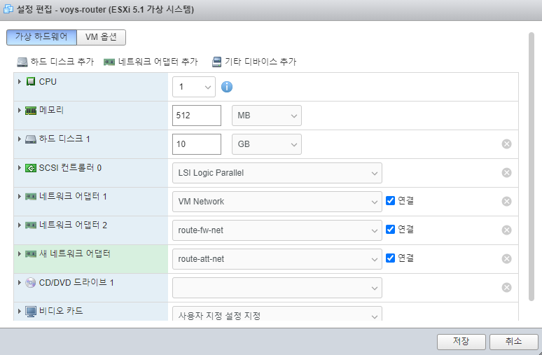 외부와 인터넷하고 연결하는 구간을 위해 네트워크 VM Network를 새로 추가한다.