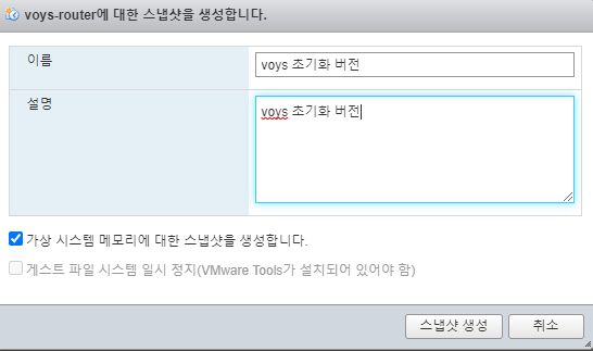 문제 발생 시 초기화로 돌아가기 위해 스냅샷 설정
