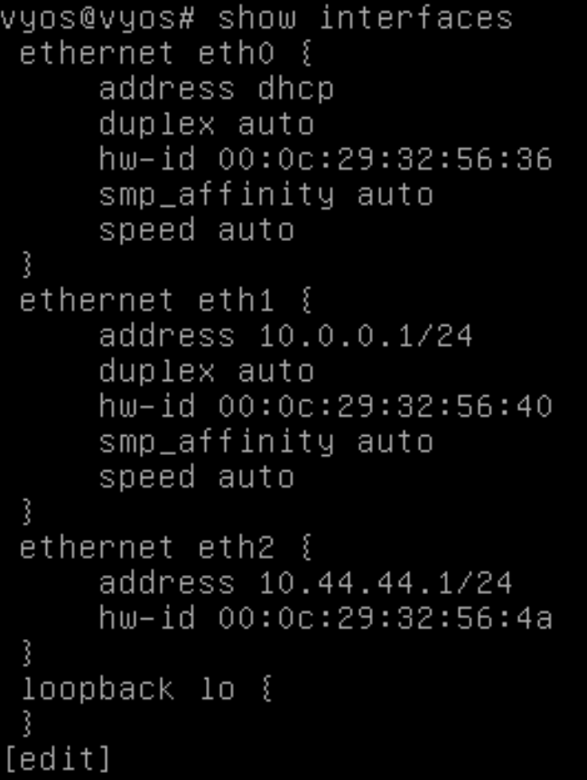 show interfaces 명령어를 통해 네트워크 설정 값을 확인할 수 있다.