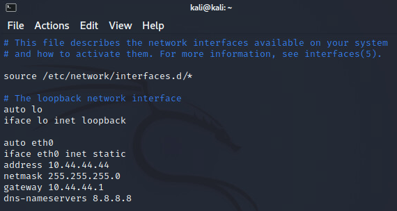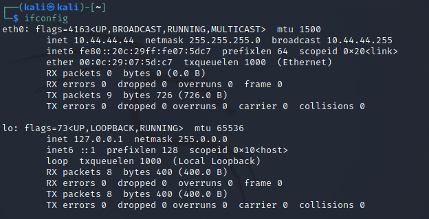 ifconfig 명령어 입력 시 10.44.44.44로 설정되어 있는 것을 알 수 있다.