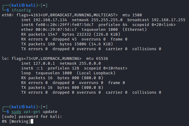 IP 설정이 되어 있지만 sudo apt-get update가 실행되지 않는 것을 알 수 있다.