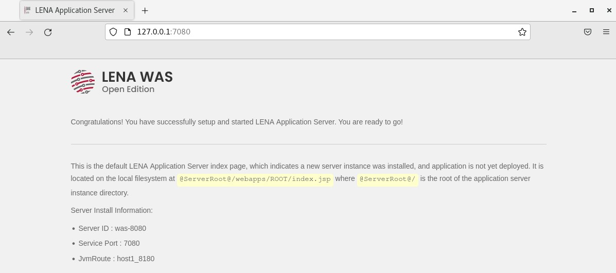 LENA WAS 디폴트페이지가 보이는 것을 알 수 있다.