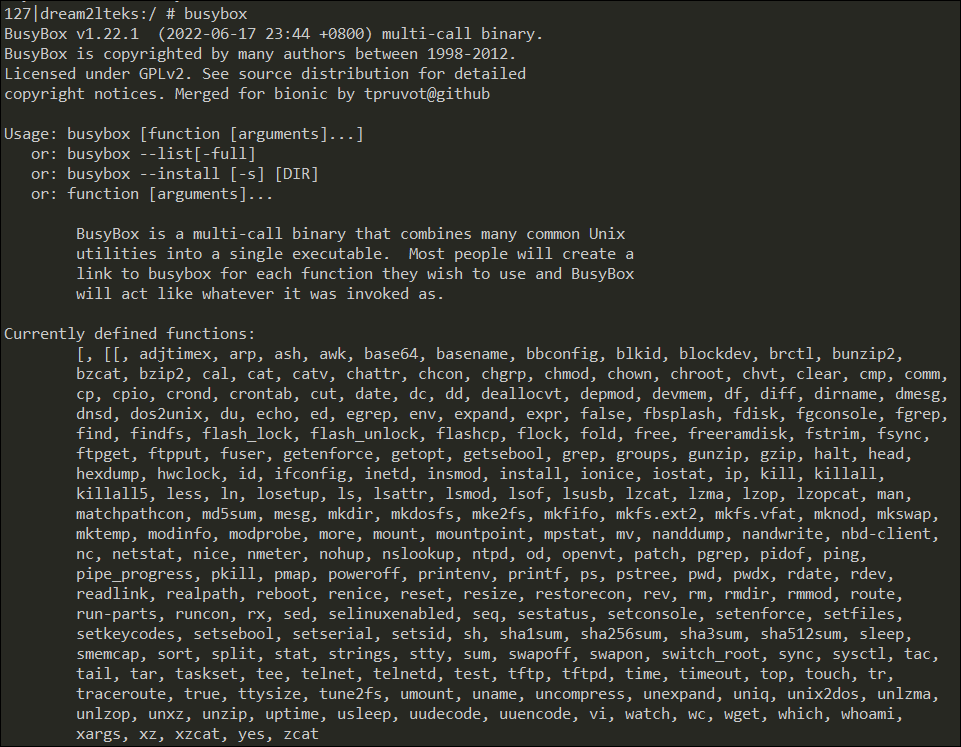 busybox 명령어를 입력하면 아래와 같이 명령어를 확인할 수 있다.