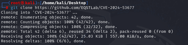 공격자 칼리리눅스에 CVE-2024-53677 저장소의 PoC를 다운로드한다.