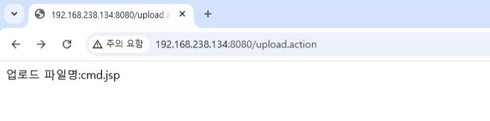 아래와 같인 WebShell인 cmd.jsp 파일이 업로드가 성공한 것을 알 수 있다.