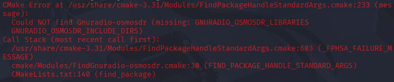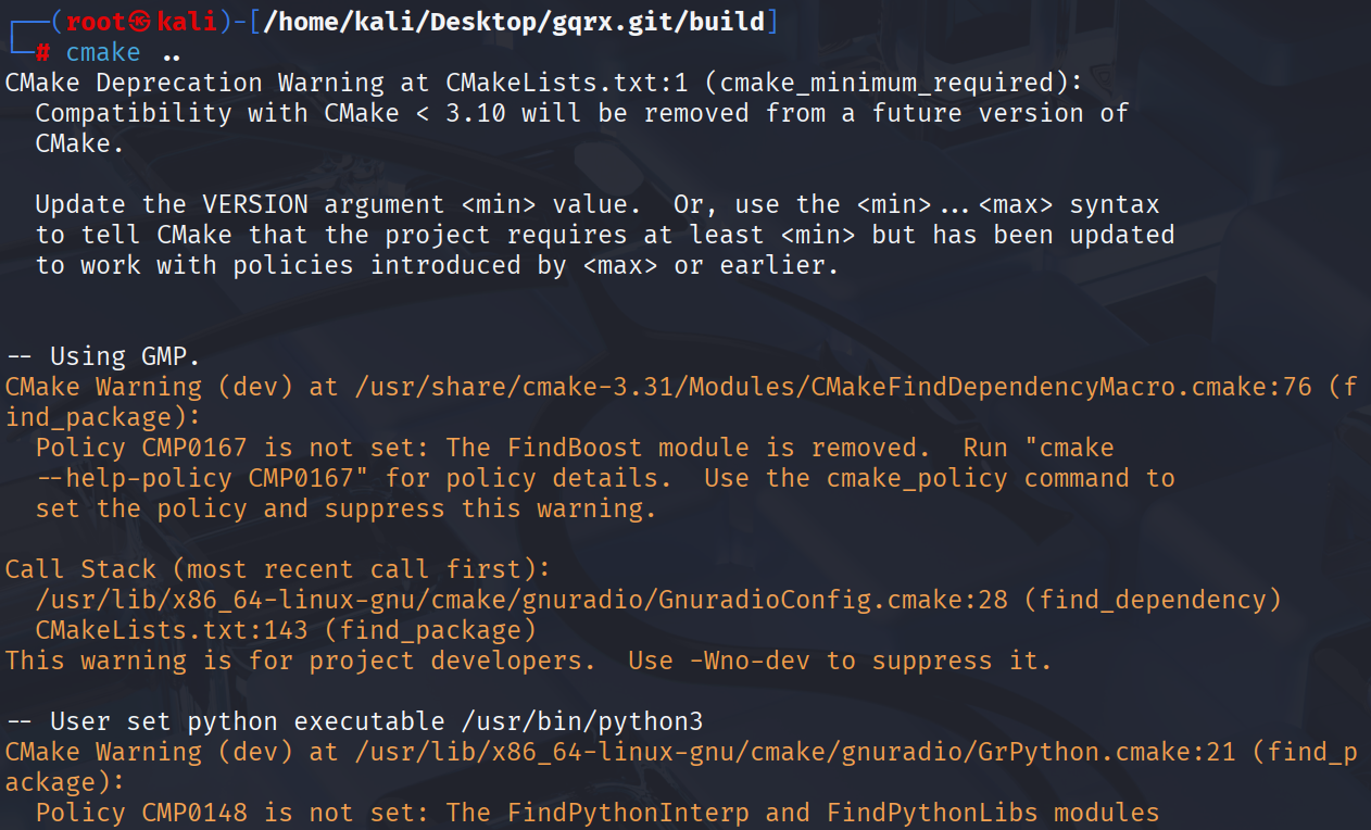 다시 cmake 명령어를 실행 시 아래와 같이 에러를 확인한다.