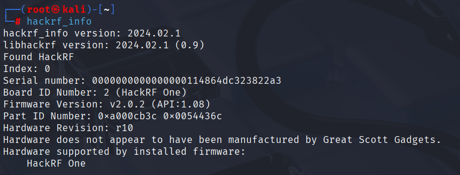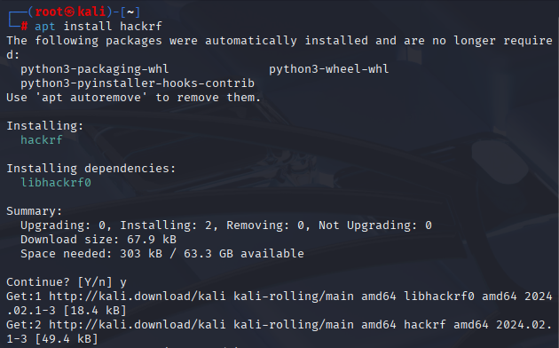 칼리 리눅스 업데이트를 진행한 후 아래와 같은 명령어로 hackrf 설치한다.