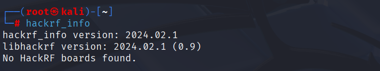 hackrf_info 명령어를 입력하면 hackrf_one 장비를 연결하지 않으면 아래와 같이 보여준다.