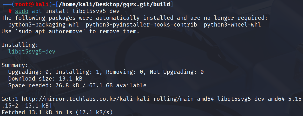 gqrx를 제대로 빌드하고 실행하려면 다음 패키지들도 함께 설치해 준다