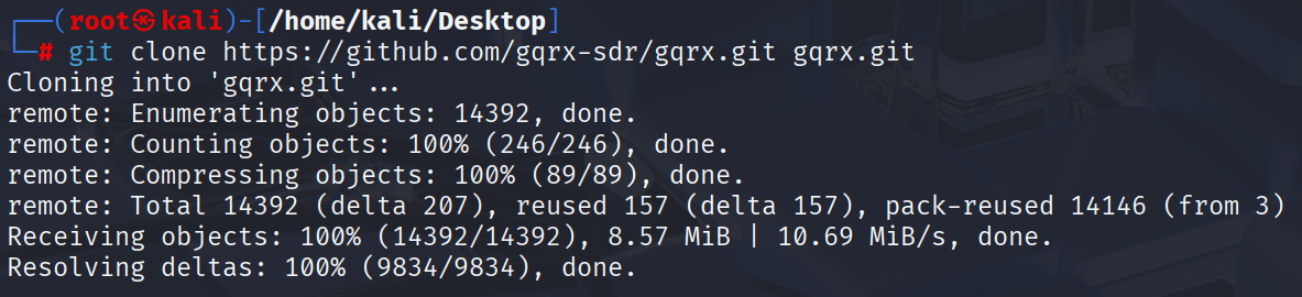 gqrx 프로그램이 실행되는 것을 알 수 있다.