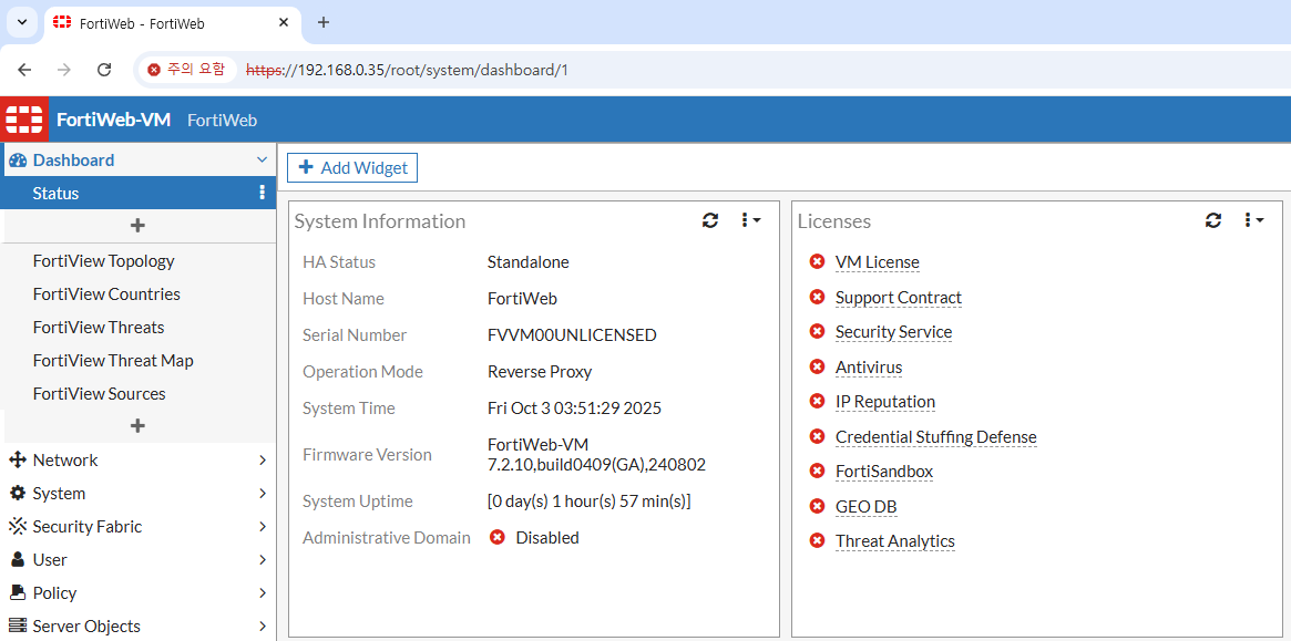 FortiWeb 취약한 7.2.10 버전을 설치 완료