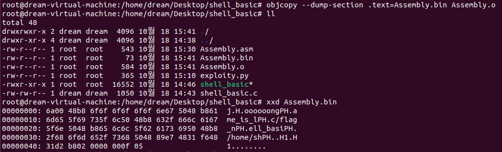- objcopy(GNU binutils)로 Assembly.o 내부의 .text 섹션(실행 코드)만 추출해서 Assembly.bin 이라는 순수한 바이너리 바이트 파일로 저장한다.