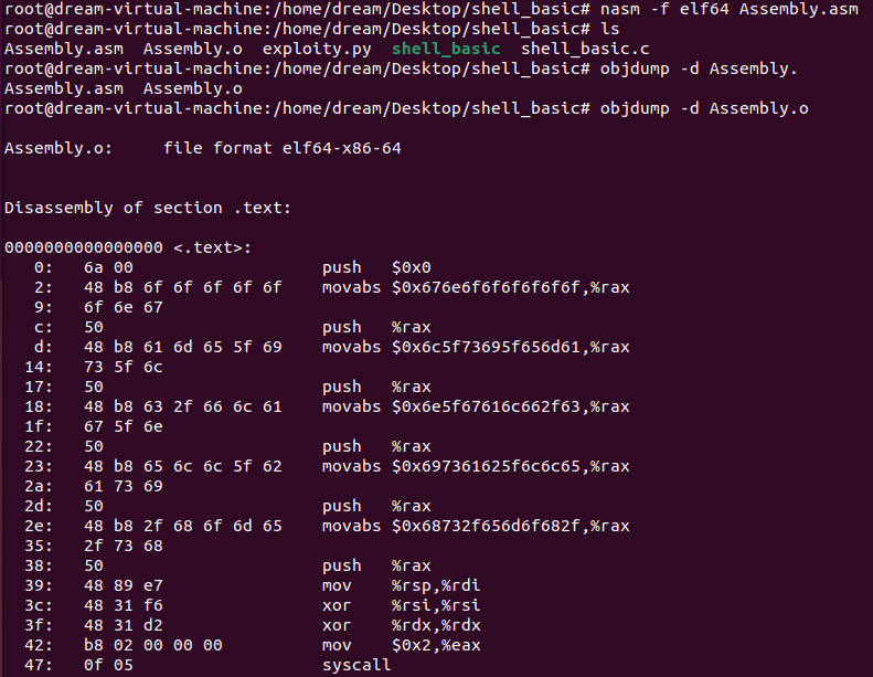 - nasm(Netwide Assembler) 명령어가 Assembly.asm 어셈블리 파일을 64-bit ELF 객체 파일(Assembly.o)로 어셈블한다.