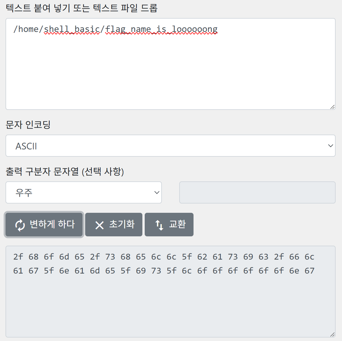 /home/shell_basic/flag_name_is_loooooong 16진수 코드 확인